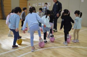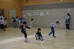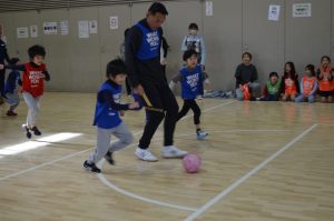 5歳児すずらん組が東京都サッカー協会が実施している「サッカー教室」に参加しました。今回のコーチはFC東京所属です。
